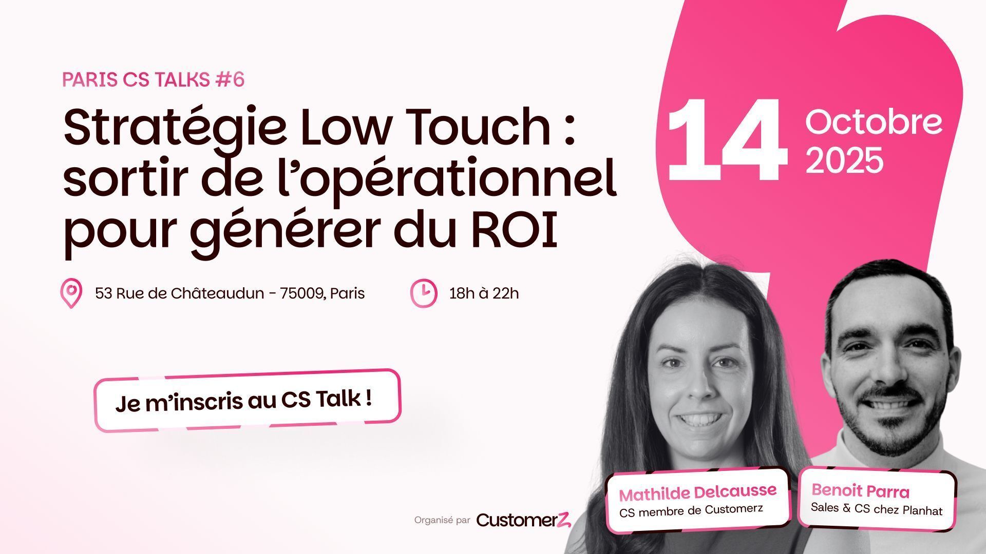 Autre event de retour en octobre, les CS Talk de Customerz ! Réservés à une cible leaders, head of et managers c’est toujours un très bon moment de partage et de nouvelles idées ! Rendez-vous le 14 octobre pour parler low-touch.