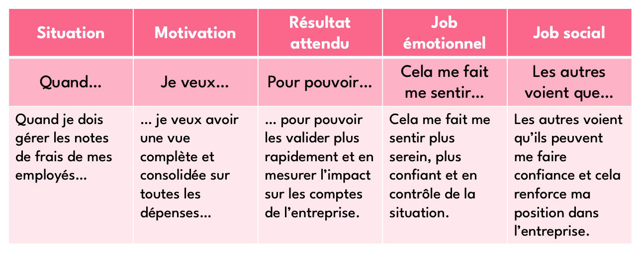 Exemple du “Job To Be Done” pour un comptable, dans le cadre d’un logiciel de digitalisation des notes de frais.